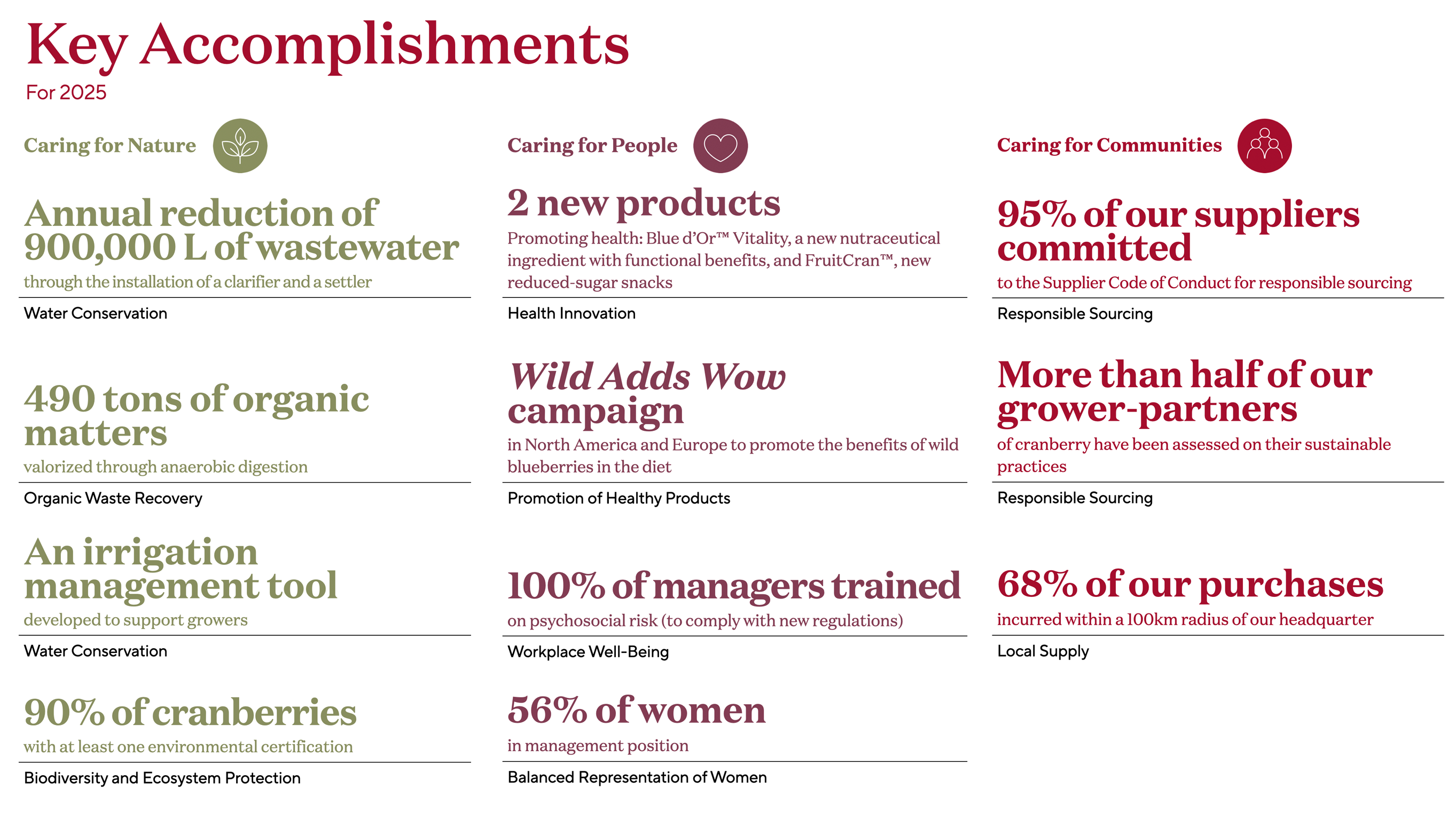 After a second year of deploying our sustainable development plan, Fruit d’Or is proud to share the progress achieved at the end of its 2025 fiscal year.