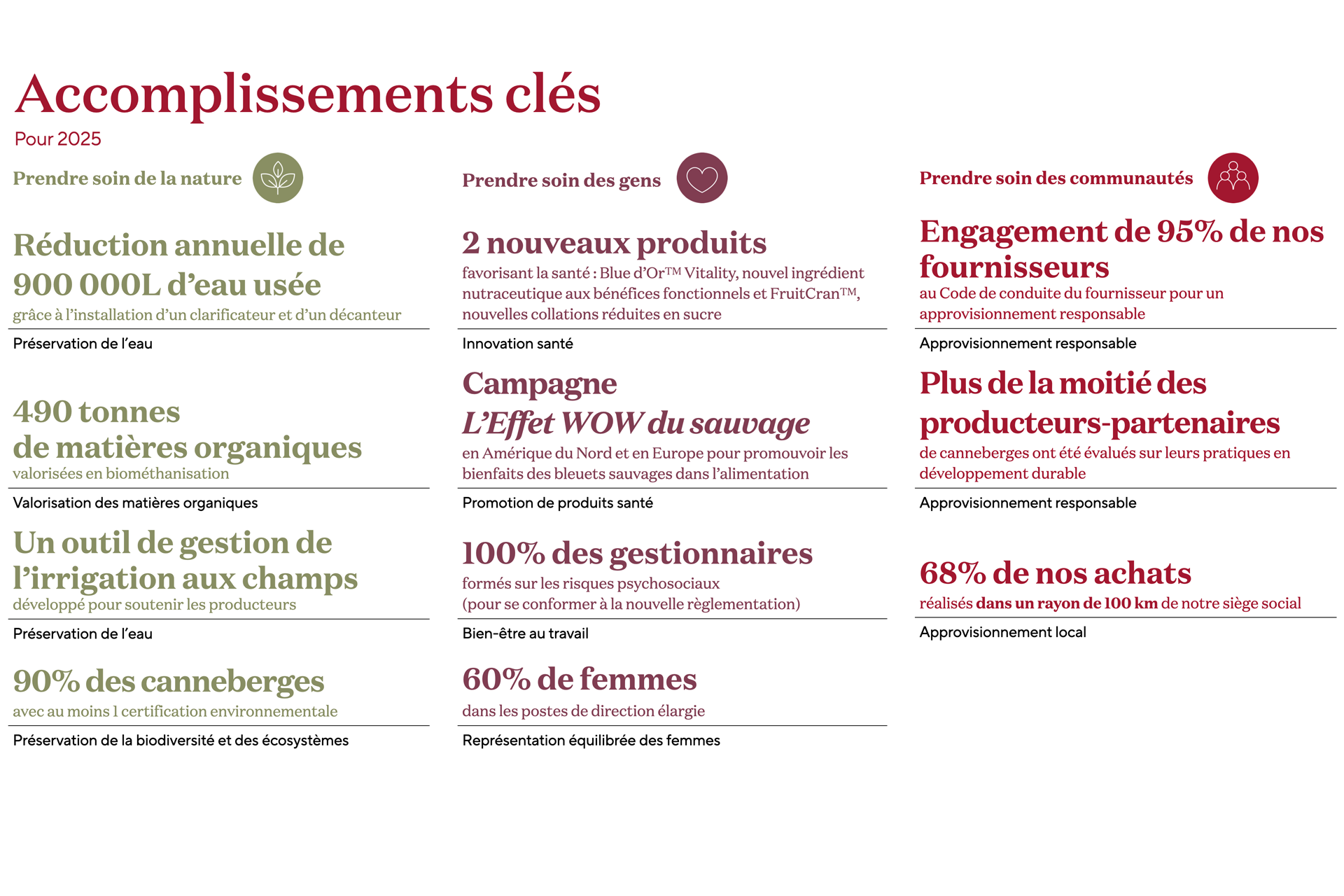 En 2025, nos équipes ont poursuivi leurs efforts avec détermination et créativité. Les actions déployées portent leurs fruits : nous avons réalisé des progrès significatifs en matière de gestion de nos effluents, de valorisation de nos matières résiduelles, d’évaluation de nos fournisseurs et de développement de produits santé, pour n’en nommer que quelques-uns.